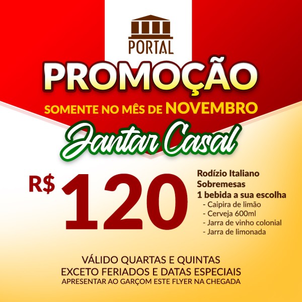 Válido para o mês de novembro, todas as quartas e quintas.